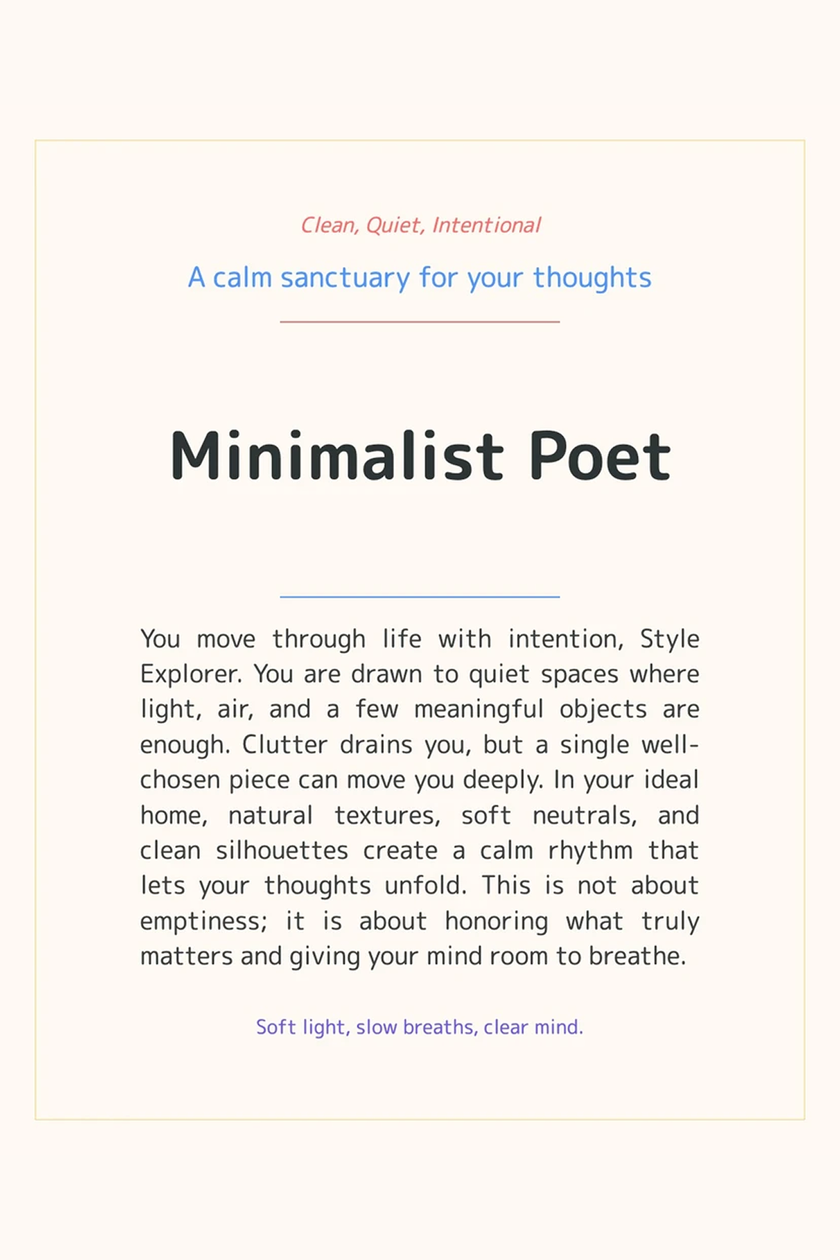 Answer questions based on your intuition, and discover your personalized test result!